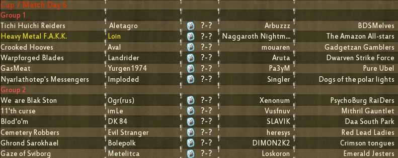 | Двоечники, не сыгравшие матчи, получают результат автоматом основываясь на моем субъективном, деспотичном мнении (победа гоблинов и орков) Переходим к неделе 6!