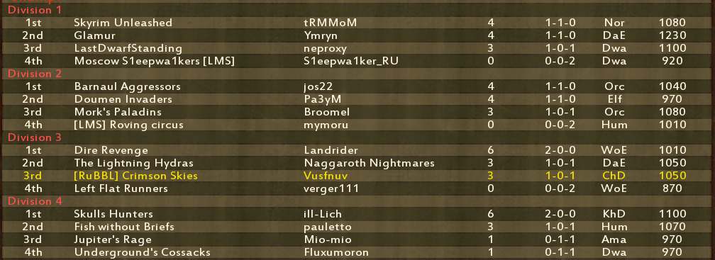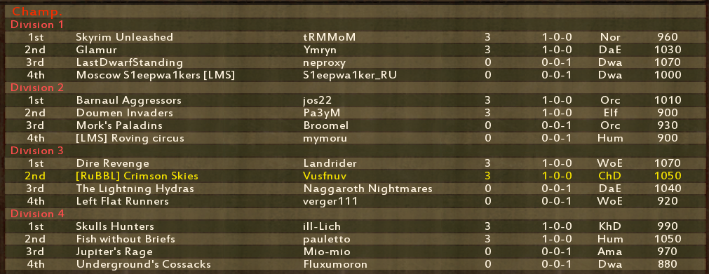 | На будущее, просьба. Не удаляйте команды и не выводите их из турнира даже если вы уже вылетели. Хотя бы до начала следующего раунда подождите. Я прям в игре статистику подсчитываю через историю команд, мы же ББМанагером не пользуемся.